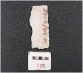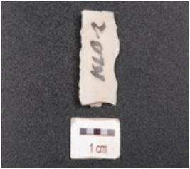 | Description / विवरण | Blade made of chert, trapezoidal in section, double ridge on dorsal and irregular marks on edges. |