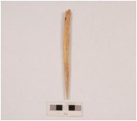 | Description / विवरण | A bone point, one end is broken and flat, another end is pointed, surface is smooth and polished white in colour. |