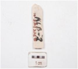 | Description / विवरण | Blade made of chert, trapezoidal in section, double ridge on dorsal and use marks on edges. |
