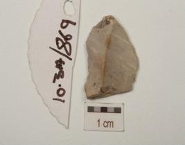 | Description / विवरण | Fragment of chert blade, ridge on dorsal and bulb on ventral, wear marks along cutting edges and triangular cross section. |