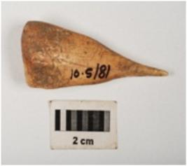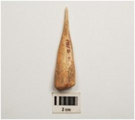 | Description / विवरण | A bone awl smoothly polished surface, top part is point and base part is broad. |