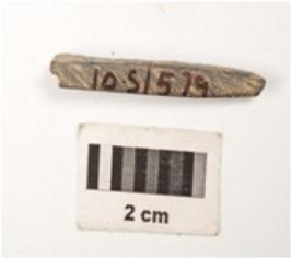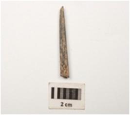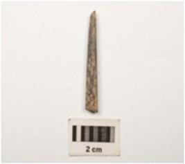 | Description / विवरण | A fragment of a point with rectangular cross section, made with himalayan soft stone, top is pointed and partly broken, well polished surface. |