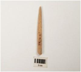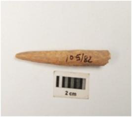 | Description / विवरण | Point made of bone, rough surface and slightly broken on the base. |