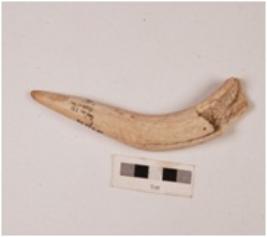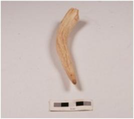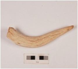 | Description / विवरण | A bone point, conical in shape, one end is pointed, uneven and rough surface, cracks on surface and off white in colour. |