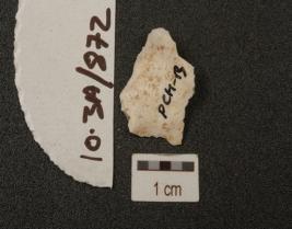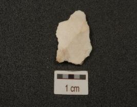 | Description / विवरण | A chert flake with prepared platform, ridge on dorsal, prominent bulb on ventral and wear marks along cutting edges. |