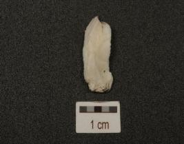| Description / विवरण | Flake on chert, with wear marks along cutting edges, prominent bulb on ventral and striking platform. |