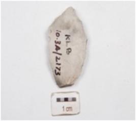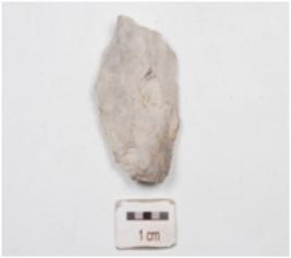 | Description / विवरण | Flake made of chert, flake scars on dorsal, prominent bulb on ventral and irregular edges. |