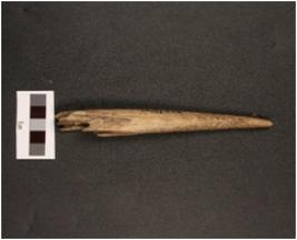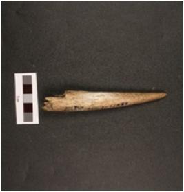 | Description / विवरण | A horn point polished and smooth surface, pointed tip and broken other end. |