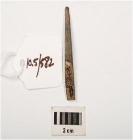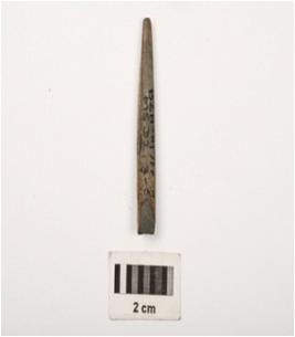 | Description / विवरण | A fragment of a point with rectangular cross section, made with himalayan soft stone, one end is pointed and other partly broken, well polished surface. |