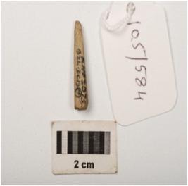 | Description / विवरण | A fragment of a point, with circular cross section, top is end pointed and bottom is circular and partly broken, well polished surface. |