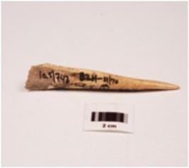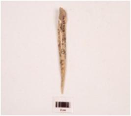 | Description / विवरण | A bone point, one end is pointed and sharp and another end is broken uneven surface and polished. |