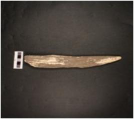 | Description / विवरण | A bone dagger, broken both ends with cracks and smooth surface. |