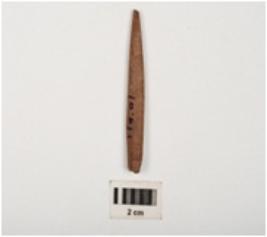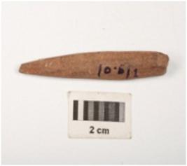 | Description / विवरण | A point made with stone, circular shaped, one end is pointed and other is thicker, brown in colour, well polished surface, one end is slightly chipped off. |