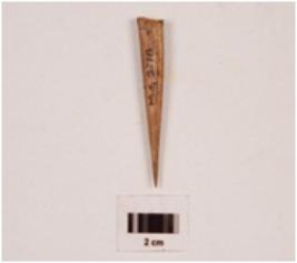 | Description / विवरण | A bone tool, one end is pointed and sharp, another end is broken and rectangular section, smooth surface and polished. |
