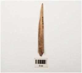 | Description / विवरण | Point made of bone, rough surface and slightly broken on the surface. |