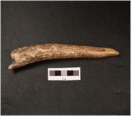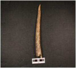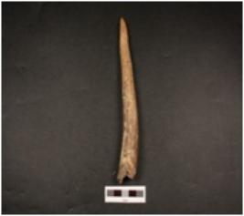 | Description / विवरण | A horn point with pointed end, broken other end, smooth and polished surface. |