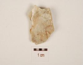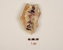 | Description / विवरण | End struck chert flake, prepared platform and prominent bulb on ventral side. |