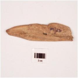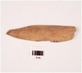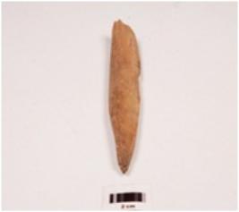 | Description / विवरण | Bone point partly broken, smooth surface and chipped off from the top. |