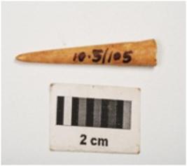 | Description / विवरण | An bone point pointed top, smoothly polished surface and slightly broken. |