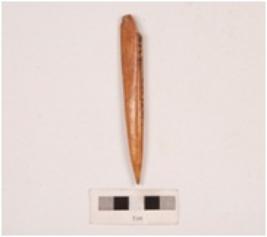 | Description / विवरण | A bone point, one end is pointed end another end is broken, flat surface, natural depression on reverse surface, smooth surface and polished. |