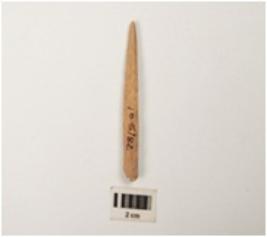 | Description / विवरण | Point made by bone, unpolished rough surface, slightly broken on the base. |