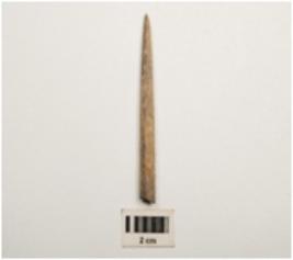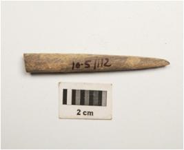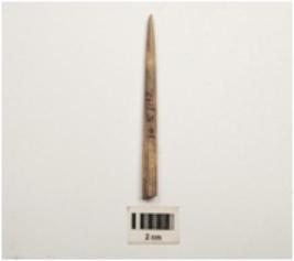 | Description / विवरण | Point made of bone, rough surface, slightly broken on the one end and other end pointed. |