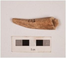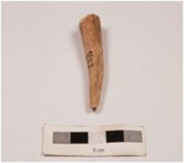 | Description / विवरण | A bone point, conical in shape, one end is pointed, other end is broken, uneven and rough surface. |