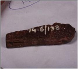 | Description / विवरण | Fragment of copper chisel with uneven surface. Broad at one end and blunt at other end. |