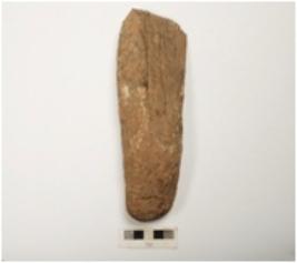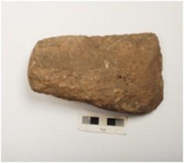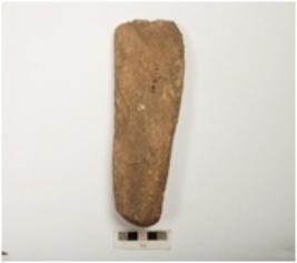 | Description / विवरण | A stone wedge with sharp broad working edge, slightly damaged at both side edge, unpolished surface and used mark on working edge. |