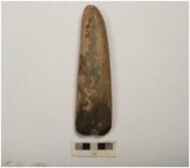 | Description / विवरण | A axe with sharp working edge, slightly broken at one side edge and well polished surface. |
