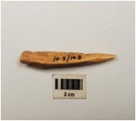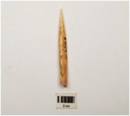 | Description / विवरण | Point made by bone, smoothly polished surface pointed one side, slightly broken. |