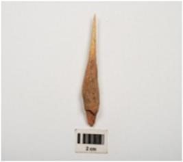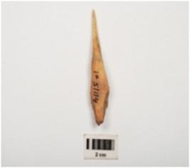 | Description / विवरण | Point made by bone, smoothly polished surface and irregular shape and damaged on the surface. |