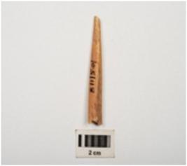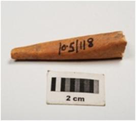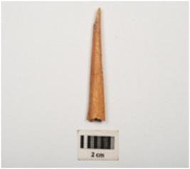 | Description / विवरण | Fragment of a point, made by bone, smoothly polished surface top point broken from side. |