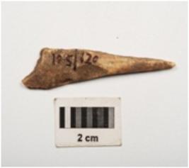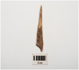 | Description / विवरण | Point made by bone, smoothly polished surface but rough surface, slightly damaged. |