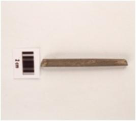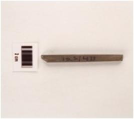 | Description / विवरण | A stone point with flat surface, square cross section, polished surface and both ends are broken. |