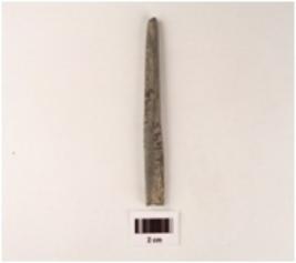 | Description / विवरण | A elongated stone point, tapered top sharp tip is missing, rectangular cross section and rough surface. |