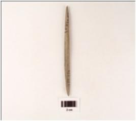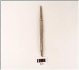 | Description / विवरण | A stone point, both pointed ends are broken, circular section and rough surface. |
