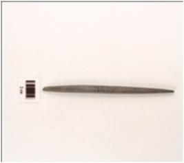 | Description / विवरण | A elongated stone point, both ends are pointed and has prepared platform. |