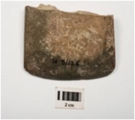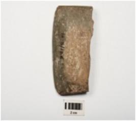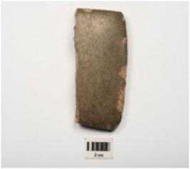 | Description / विवरण | A fragment of neolithic celt with sharp broad working edge, slightly chipped off at the edges, well polished surface. |