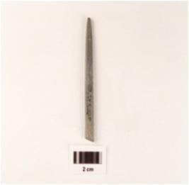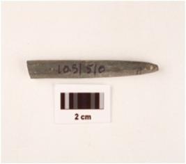 | Description / विवरण | A elongated stone point, polished surface and round cross section with sharp tip is missing. |
