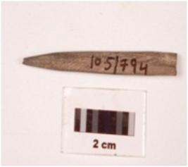 | Description / विवरण | Fragment of bone point small shaped, plano convex in section, polished both sides, smooth surface. |