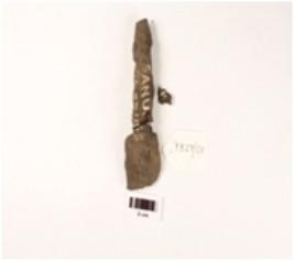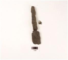 | Description / विवरण | Fragment of iron spearhead with long tang and flattened broad edge. |