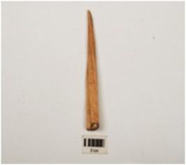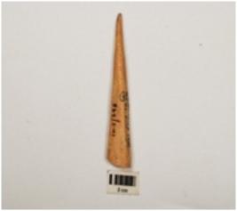 | Description / विवरण | Arrow head made on a long bone, polished surface, one part slighly broken. |