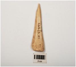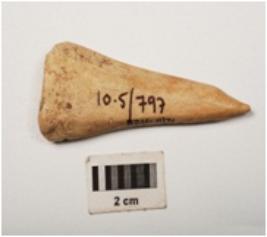 | Description / विवरण | A bone point made on a bone, polished surface both side upper and lower. |