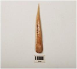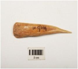 | Description / विवरण | Arrow head made by a long bone, polished surface, one part is pointed. |