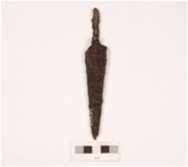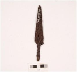 | Description / विवरण | A iron arrowhead, top is pointed and sharp, surface rough and rusted with tang. |