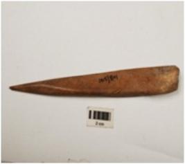 | Description / विवरण | Arrow head, made on a long bone smoothly polished surface. |