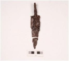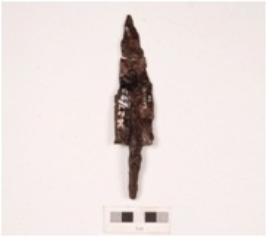 | Description / विवरण | A broken piece of iron arrowhead, top portion is broken, surface is rusted and long tang. |