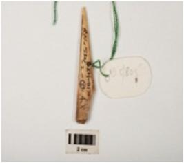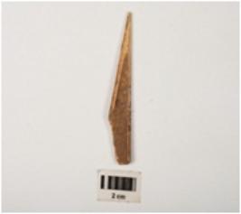 | Description / विवरण | A bone point made on a bone, smoothly polished surface upper and lower side. |