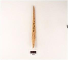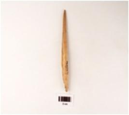 | Description / विवरण | A sharp bone point, pointed one end other end chipped off broken and polished surface. |